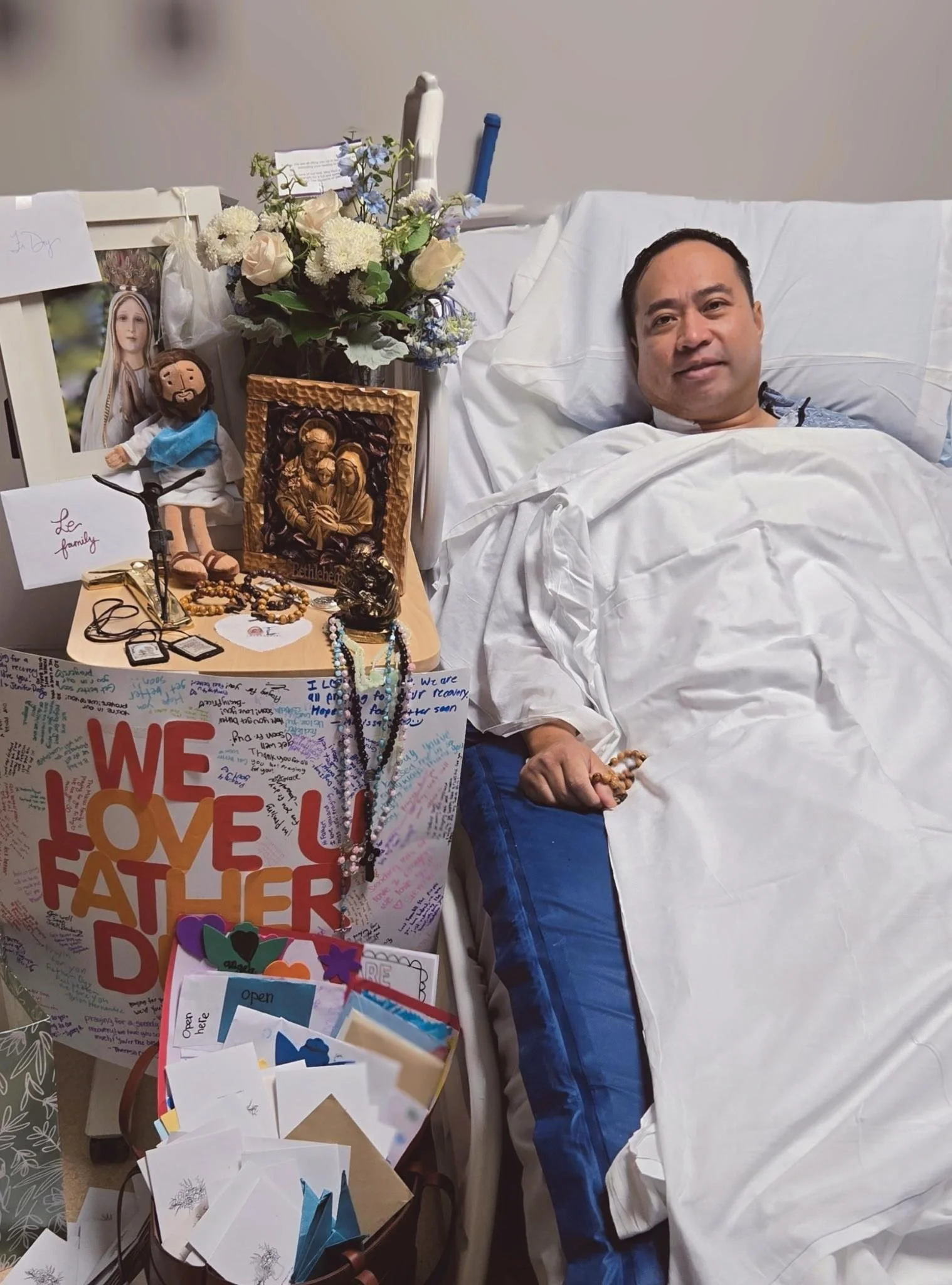 This past weekend, countless Masses across many parishes were offered for Fr. Duy, including his brother priests, who celebrated Mass with him in the ICU so he could receive the Eucharist. The outpouring of love through your messages, prayers, and support has lifted both him and his family beyond words.